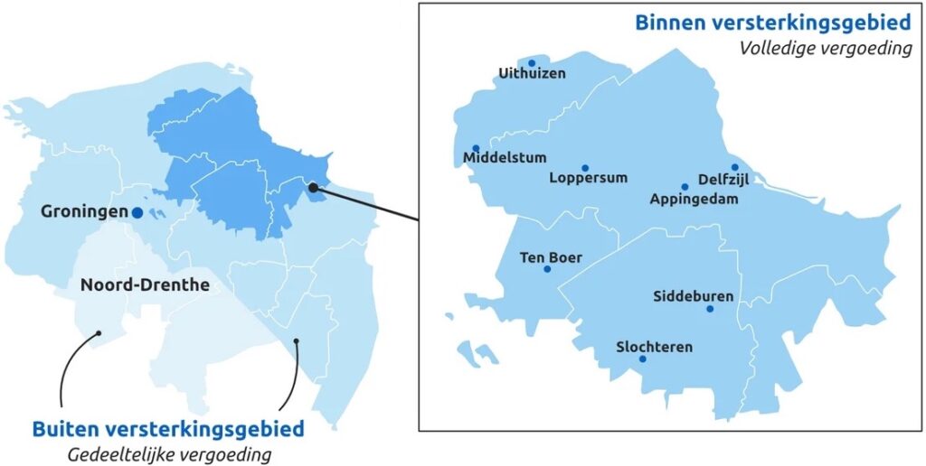 Of u nu in het versterkingsgebied woont of net daarbuiten, er zijn aanzienlijke bedragen beschikbaar gesteld om uw isolatieproject te ondersteunen. Alle huiseigenaren in de provincie Groningen, zoals in de gemeenten Groningen, Veendam, en Stadskanaal, en de Drentse gemeenten Tynaarlo, Noordenveld en Aa en Hunze komen in aanmerking voor deze subsidie. Dit is inclusief de al bestaande ISDE-subsidie.